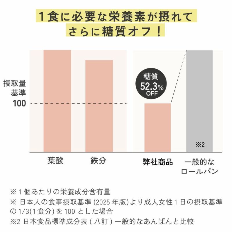 ※ 日本食品標準成分表(八訂)一般的なロールパンと比較