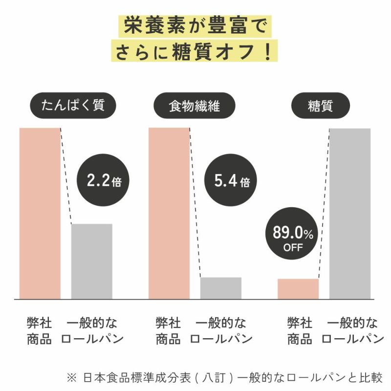 ※ 日本食品標準成分表(八訂)一般的なロールパンと比較