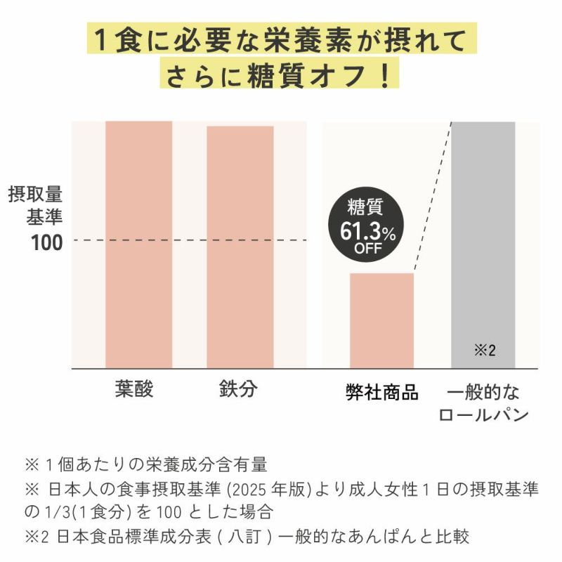 ※ 日本食品標準成分表(八訂)一般的なロールパンと比較