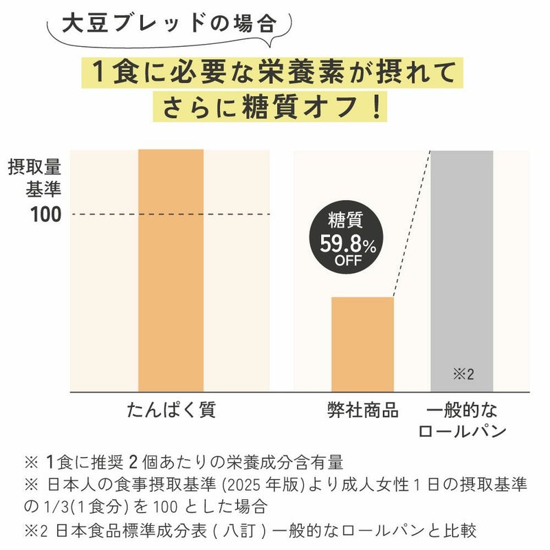 ※ 日本食品標準成分表(八訂)一般的なロールパンと比較